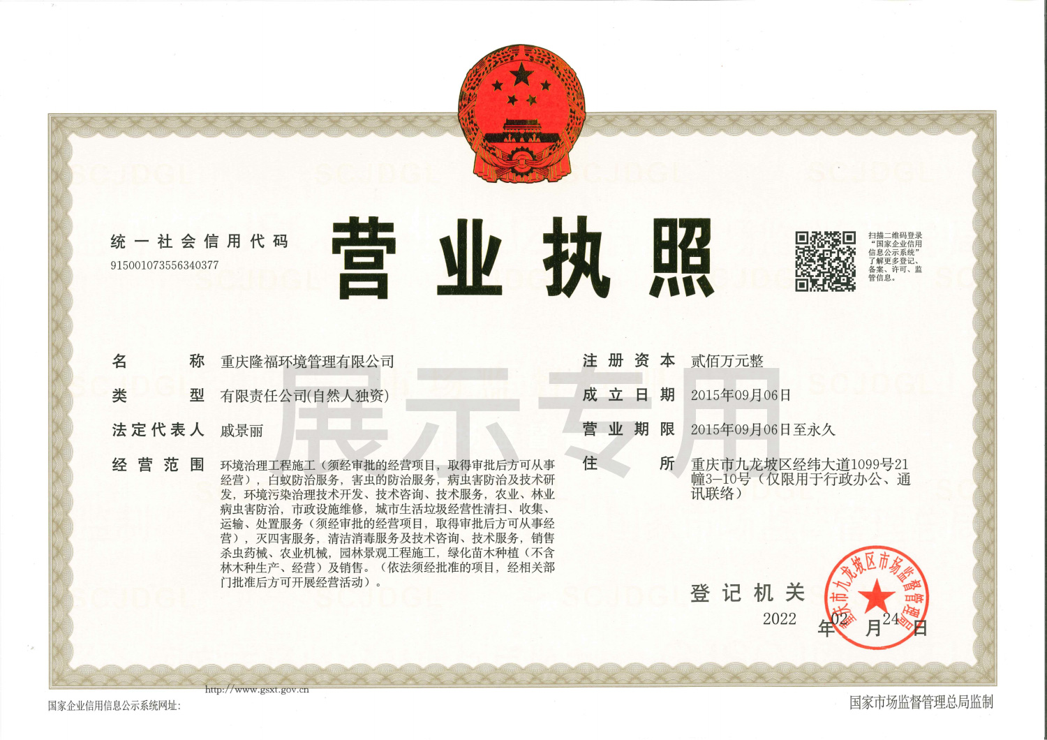 重慶隆福環境管理有限公司(以下簡稱“我司”)成立于2015年,另于2022年成立海南分公司。是一家從事專業白蟻防治、害蟲消殺、消毒防疫、園林景觀施工、滅蟲藥械銷售為一體的綜合性服務公司。